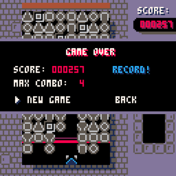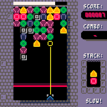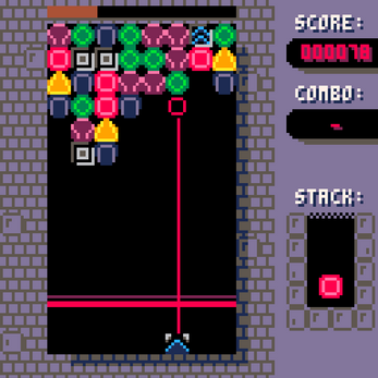 Group 4 or more blocks to destroy them. Use the stack to save and reposition up to three of them.